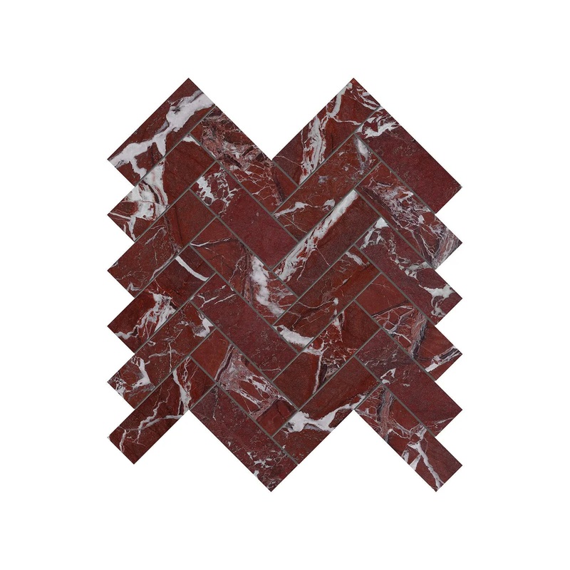 1.25″ x 4″ Tuscano Rosso Herringbone Polished Marble Mosaic 1 Sheet = .89 Sqft 1.25″ x 4″