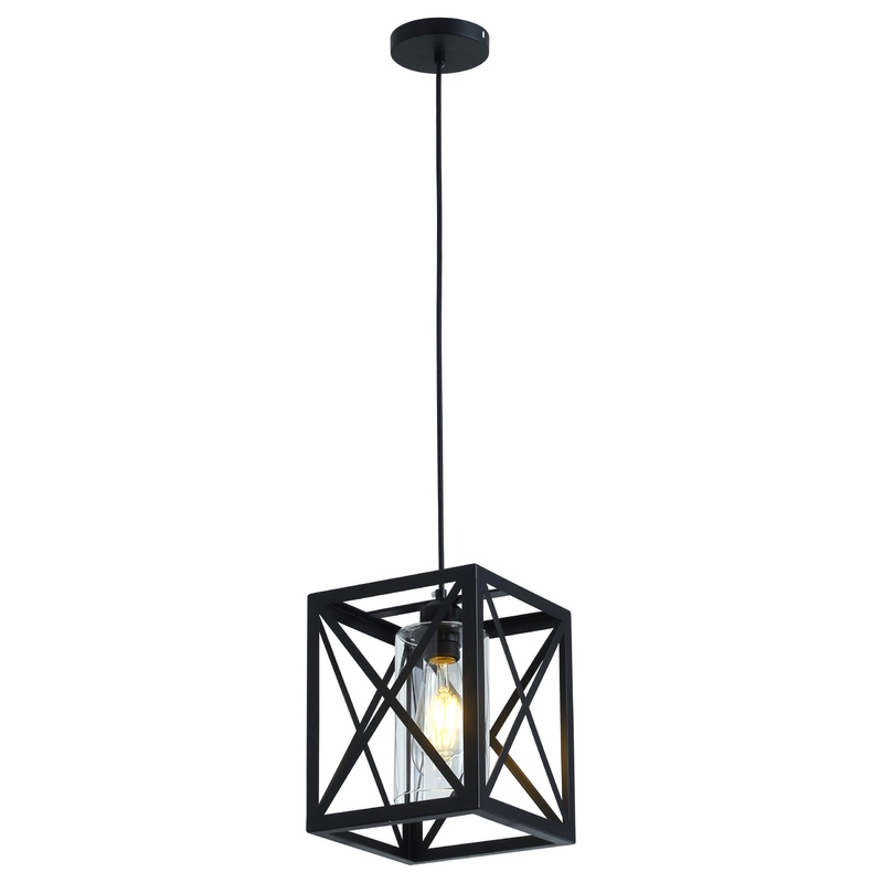 1-Light Black Finish Cuboid Seeded Glass Shade Pendant Lighting Chandelier – Industrial – Pendant Lighting – by YZZY LLC