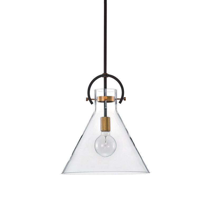 Featuring a clear glass shade and antique gold accents, this sleek one-light cone-shaped pendant is suitable for a variety of interiors. The smooth lines and neutral color scheme make this fixture perfect above any kitchen island or table, on its own or in