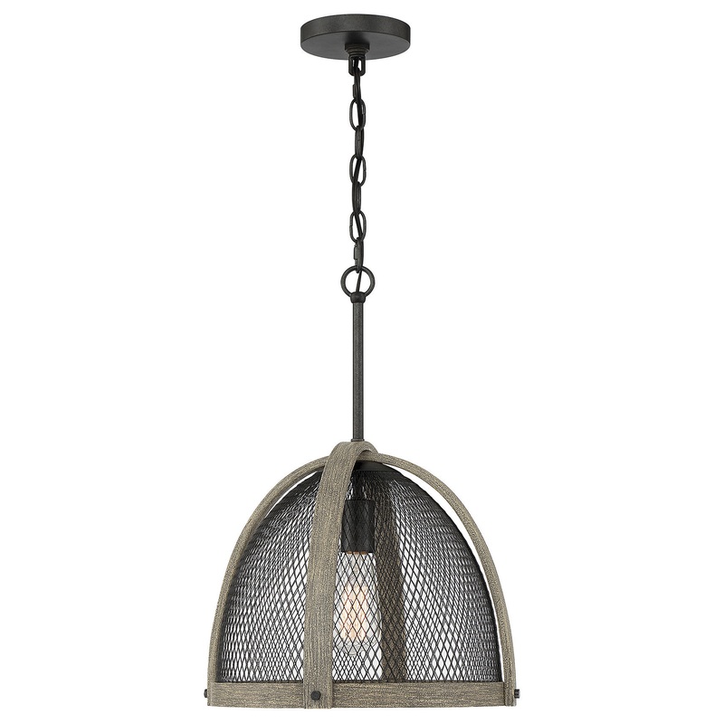 Lovers of rustic style, this Meridian 1-light pendant is for you! Featuring a wire shade with bands finished in distressed wood, creating a look reminiscent of a basket, this pendant is perfectly suited for adding farmhouse flair to any room. Use it alone or in multiples for even more flair! This pendant is 20 inches in height and 14 inches in width, plus it comes with 120 inches of chain to let you adjust the hanging height. The ceiling canopy is 5.13 inches in diameter and 0.75 inch in height. This pendant uses 1 medium size bulb of up to 60 watts, is LED compatible and is dimmable. ETL/cETL Listed.