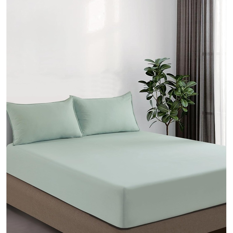 100% Vintage Washed Microfibre Fitted Sheet Set Ultra Soft & Lightweight All-Season Fitted Sheet with 2 Pillowcases (Sage, Queen Size)