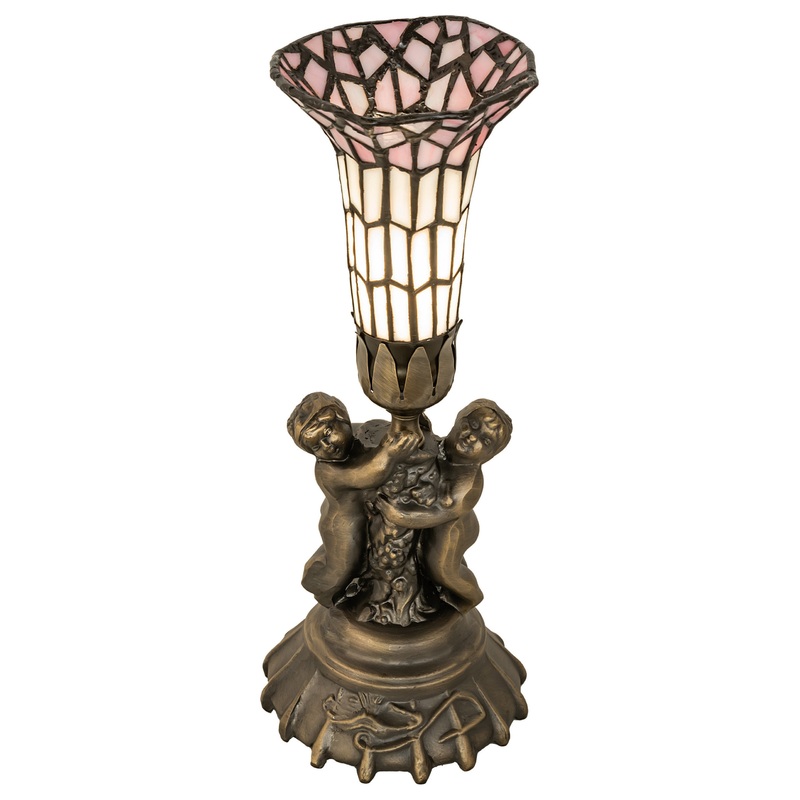 13 High Stained Glass Pond Lily Twin Cherub Mini Lamp – Victorian – Table Lamps – by Meyda Lighting-MG20433