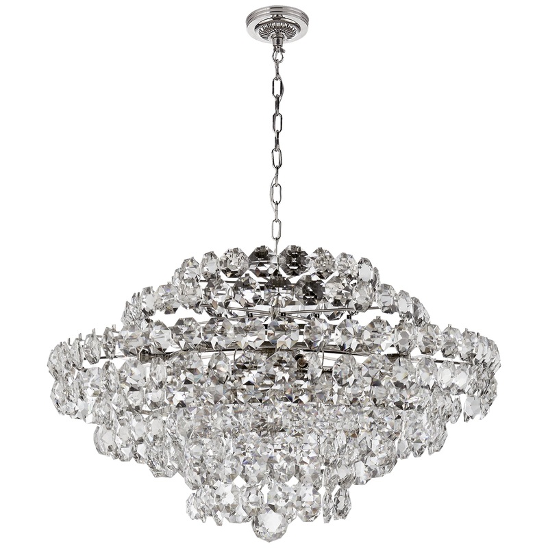 Sanger Large Chandelier in Polished Nickel with Crystal