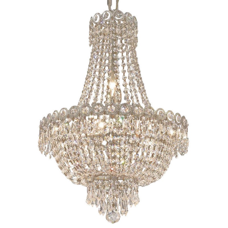 The Century Collection is a classic 19th century French inspired chandelier consisting of flowing lines of light refracting crystals gently dropping down into a bell shape. Each layer is banded with crystal octagons and a single crystal spear. A column of chrome or gold inside with soft candelabra bulbs allows the glow from within to peek between the crystals strands.