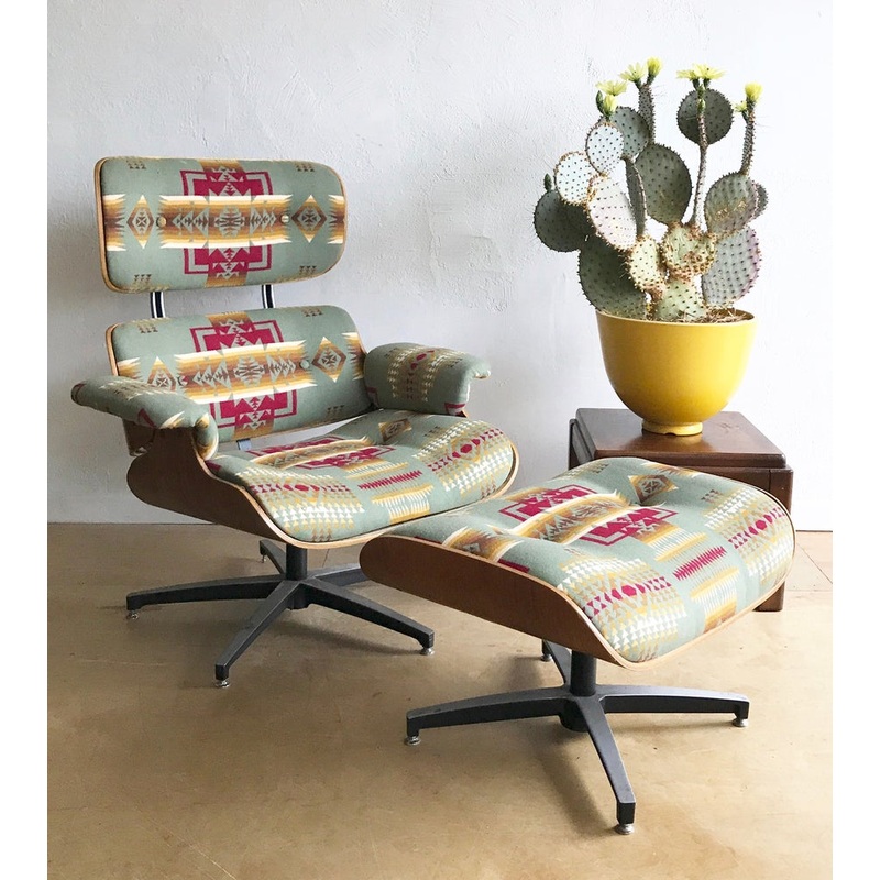 1960s Eames Style Lounge Chair & Ottoman by Plycraft in Pendleton Wool
