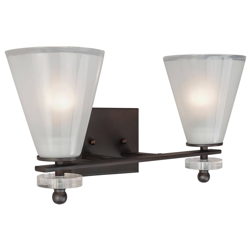 2 Light Bath Bracket, Antique Bronze, Clear Outer & Sandblast Inner Glass – Transitional – Bathroom Vanity Lighting – by Buildcom