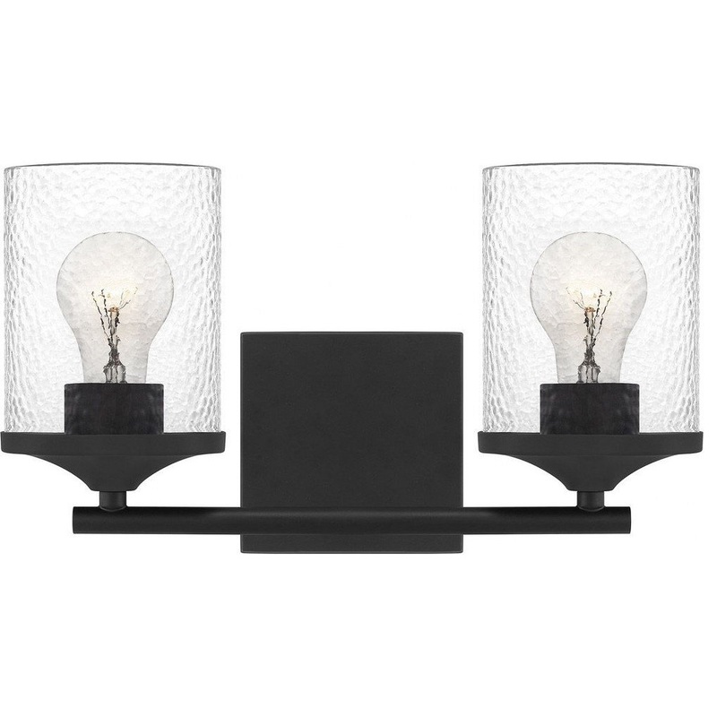 2 Light Steel Medium Bathroom Light Fixture with Clear Hammered Glass-7.75 Inches H by 14 Inches W-Matte Black Finish . Add beautiful light to smaller spaces with the Kings Glade series of venity lights and pendants featuring clear hammered glass in a rang