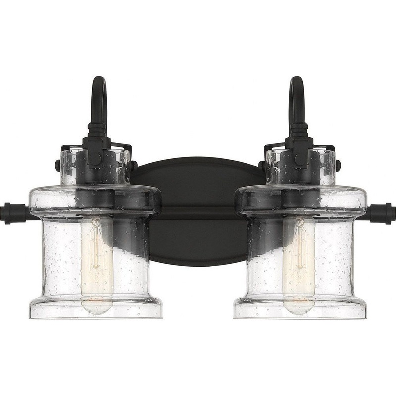 2 Light Transitional Vanity Light Fixture-Earth Black Finish . Traditional in design yet transitional in execution the Thomas Gibson Drive collection features globes in seedy glass with a unique jar-like silhouette. The decoratively capped center rod suppo