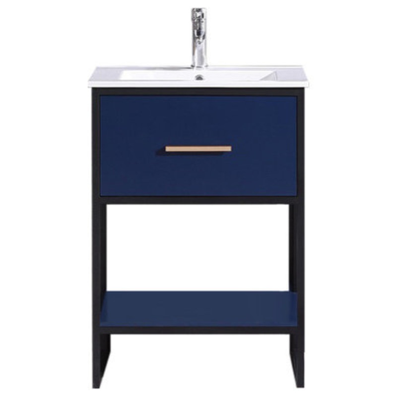 24″ Blue Finish Sink Vanity With Black Metal Frame, PVC – Transitional – Bathroom Vanities And Sink Consoles – by Legion Furniture