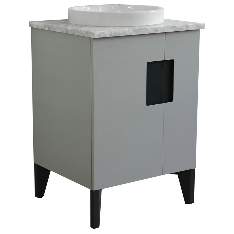 25″ Single Sink Vanity, Light Gray Finish With White Carrara Marble – Transitional – Bathroom Vanities And Sink Consoles – by Bellaterra Home