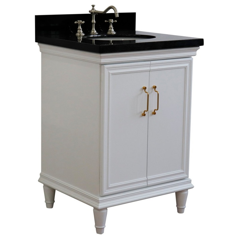 25″ Single Vanity, White Finish With Black Galaxy And Oval Sink – Transitional – Bathroom Vanities And Sink Consoles – by Bellaterra Home