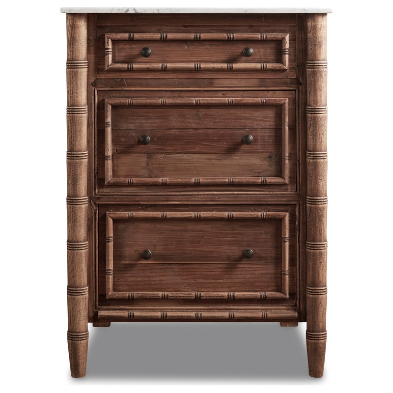 -Reclaimed Pine Faux Bamboo Single Bath Vanity Wax Finish -White Marble Top with hues of grey throughout -Under-Mounted Porcelain Rectangular Sink (Comes Separate from Top) -Base Comes Fully Assembled -Top/Base shipped separate to ensure safe transport. -S