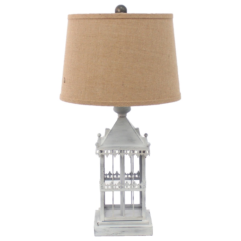 Bring of level of elegance and freshness to your space with this high quality 26-inch gray metal table lamp with brown drum shade. The base of this lamp is made of metal finished in a distressed gray tone and shaped in a unique pierced cottage castle desig