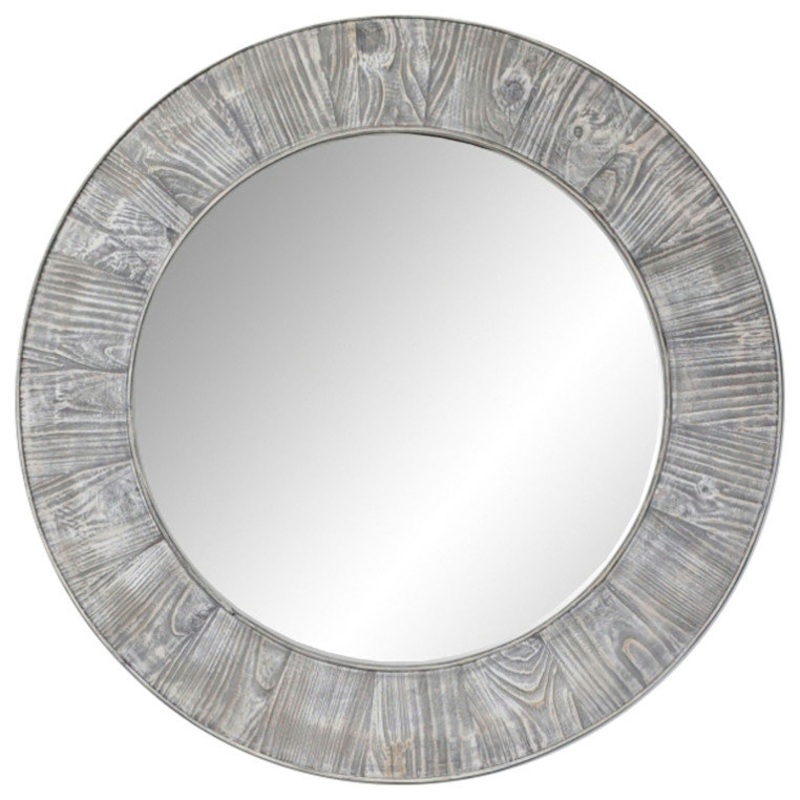 27.5″ Rustic Solid Fir Mirror in Grey (Round) – Farmhouse – Wall Mirrors – by inFurniture Inc.,