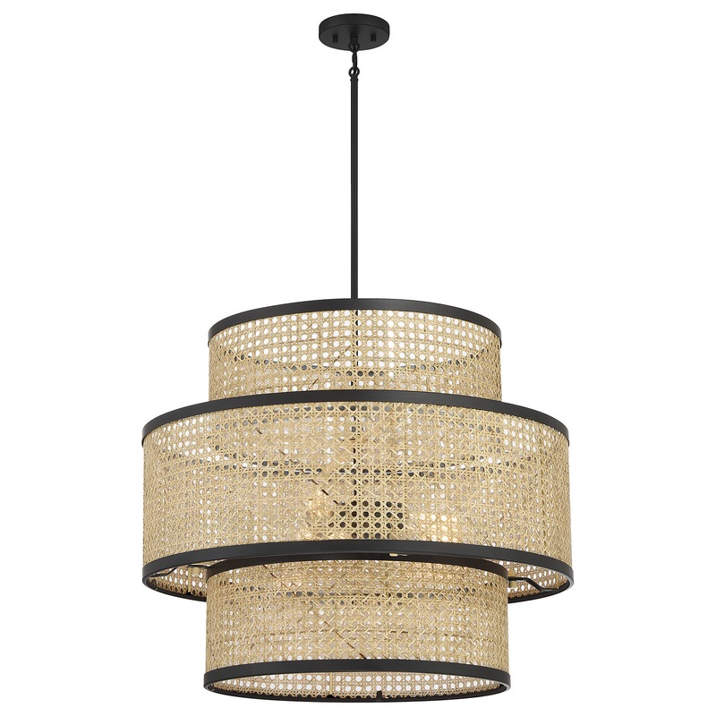 3-Light Pendant, Natural Cane With Matte Black – Tropical – Pendant Lighting – by Savoy House