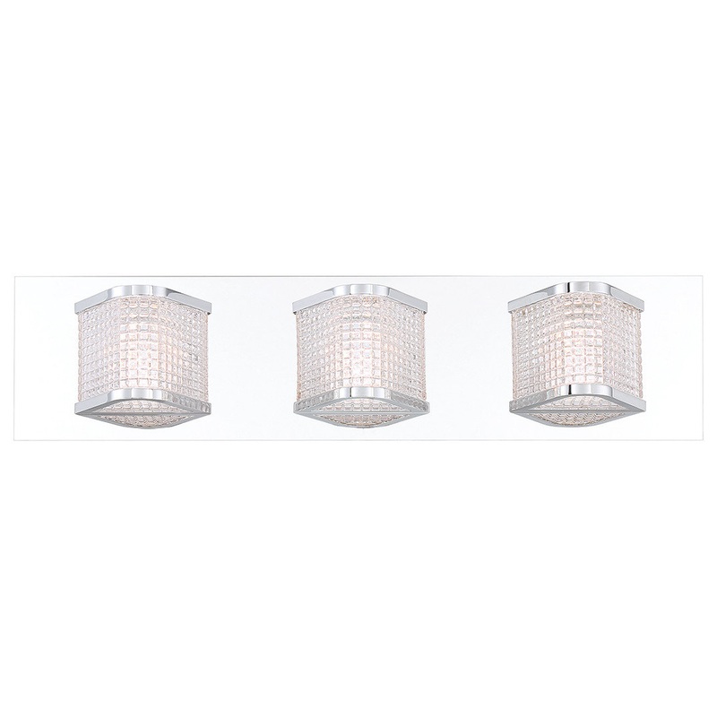 -Belgroue 3 Light LED Bath Bar Chrome -Power: Hardwire -Rating: cETL Damp -Lamping: 3x 7W Integrated LED -Bulb(s) Included.This retro inspired prismatic glass shade reflects light in a beautiful way. Paired with chrome trim this classic pattern gets an upd