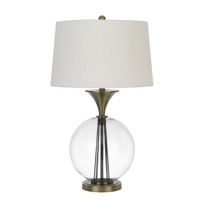 -Constructed with durable material -Weighted base for better balance -Clear round glass with antique brass finish -Bulb Type: Incandescent or CFL -Bulb Wattage: 150 -Number of Bulbs: 1 -Bulbs Included: No -Hardwire or Plug: NoModel # (MPN)BO-2990TBProduct