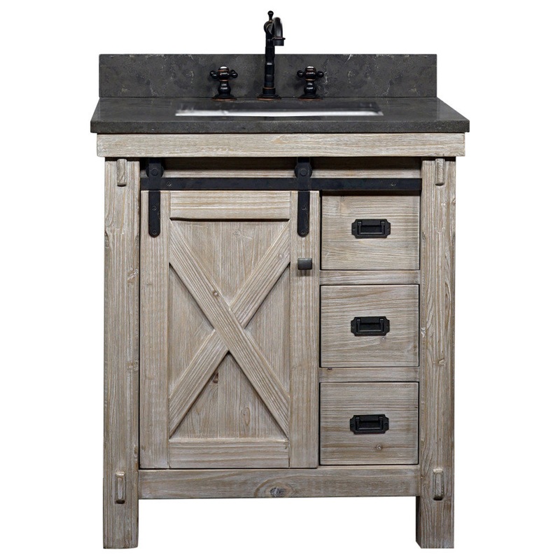31″ Rustic Solid Fir Barn Door Style Single Sink Vanity + Marble Top – Farmhouse – Bathroom Vanities And Sink Consoles – by inFurniture Inc.,