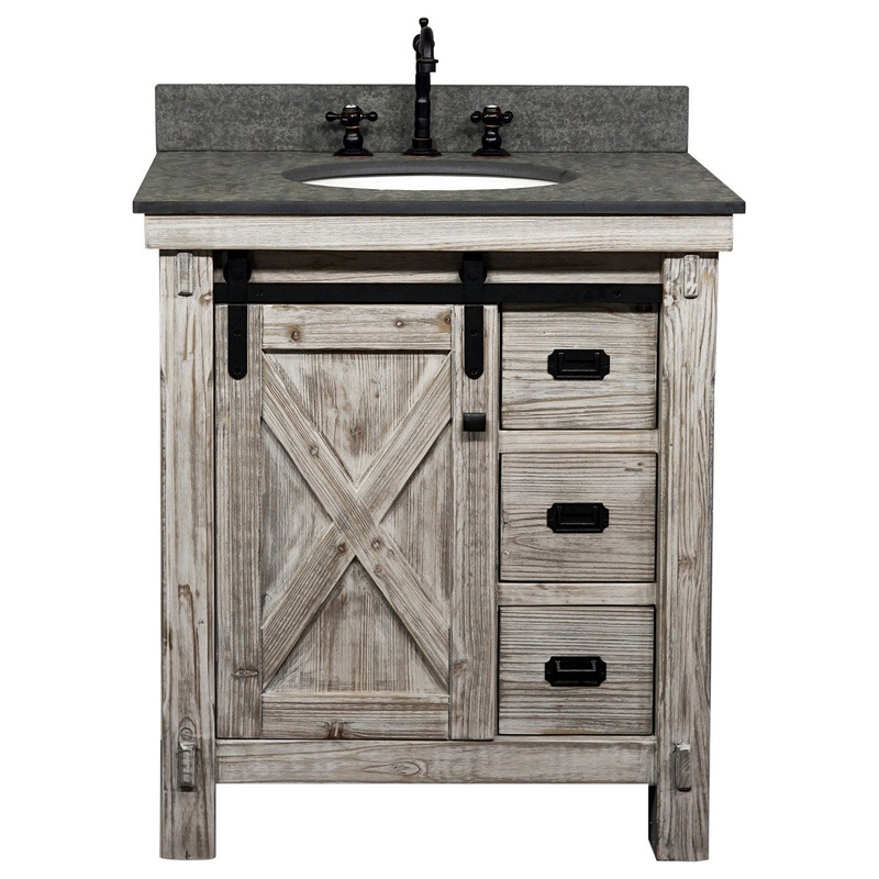 31″ Rustic Solid Fir Barn Door Style Single Sink Vanity with Marble Top – Farmhouse – Bathroom Vanities And Sink Consoles – by inFurniture Inc.,