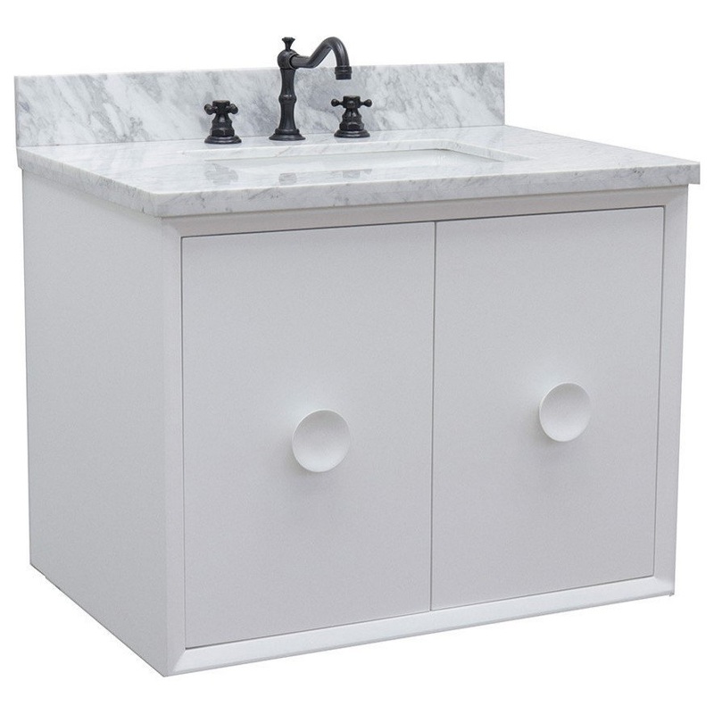 31″ Single Wall Mount Vanity, White Finish With White Carrara Top – Modern – Bathroom Vanities And Sink Consoles – by Beyond Design & More