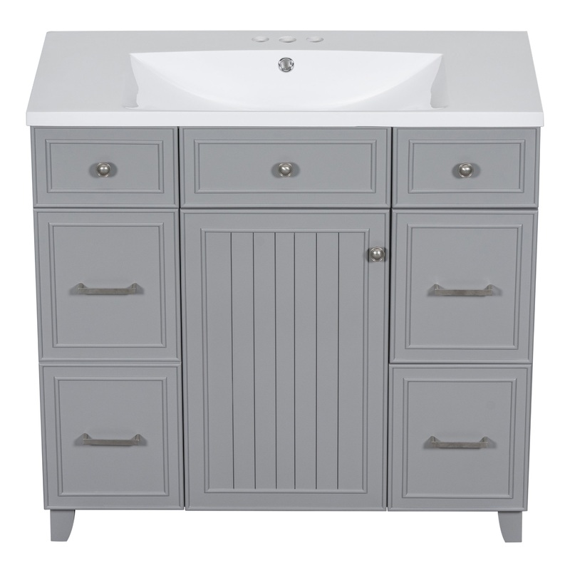 Bathroom Vanity With Sink- Easy clean and grand with the integrated sink made of premium material. The diversified gel basin design allows us to escape from the traditional countertop. The lines and shapes of the products bring us enjoyment that can not be provided by ceramic countertops or stone countertops. Features an overflow hole that prevents water leaks and spills. For your convenience, we have predrilled faucet hole- the faucet is not included.