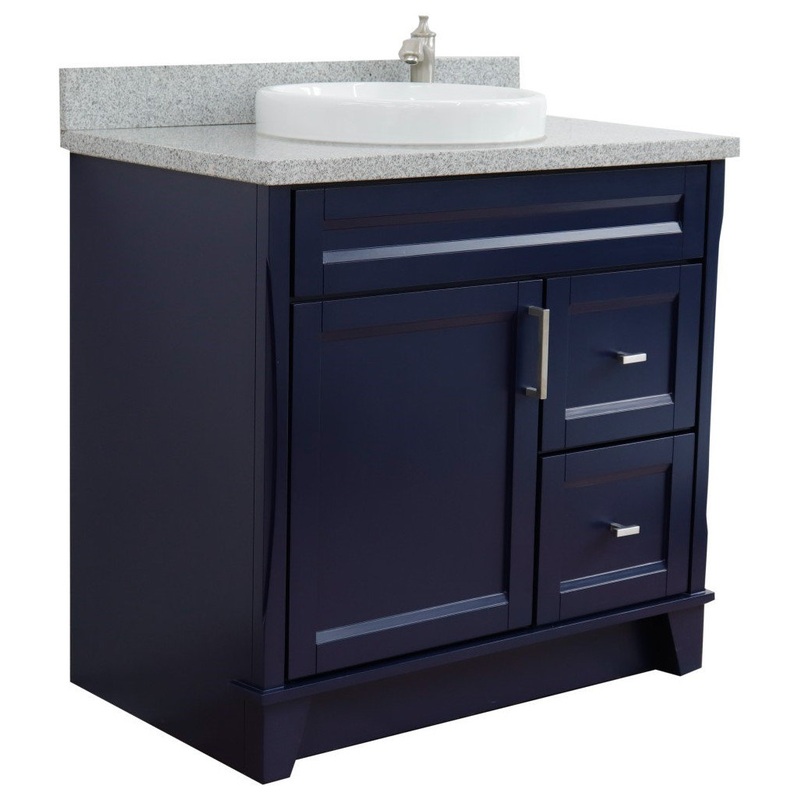 37″ Single Sink Vanity, Blue Finish With Gray Granite – Transitional – Bathroom Vanities And Sink Consoles – by Bellaterra Home-400700-37L-BU-GYRDC