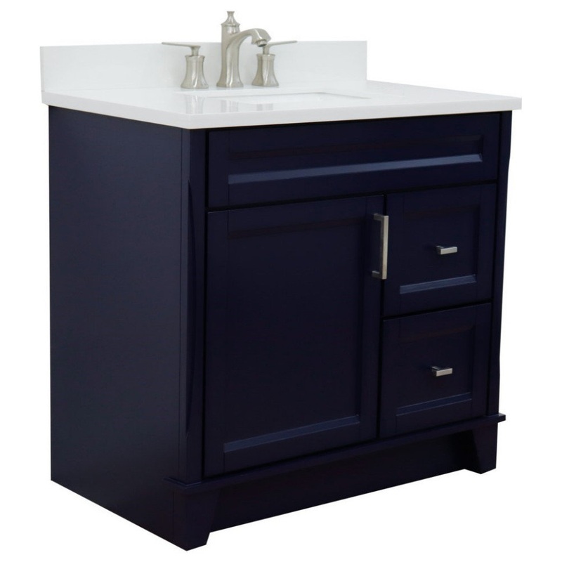 37″ Single Sink Vanity, Blue Finish With White Engineered Stone Top – Transitional – Bathroom Vanities And Sink Consoles – by Bellaterra Home-400700-37L-BU-WERC