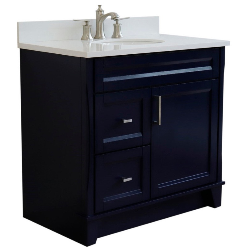 37″ Single Sink Vanity, Blue Finish With White Engineered Stone Top – Transitional – Bathroom Vanities And Sink Consoles – by Bellaterra Home-400700-37R-BU-WEOC