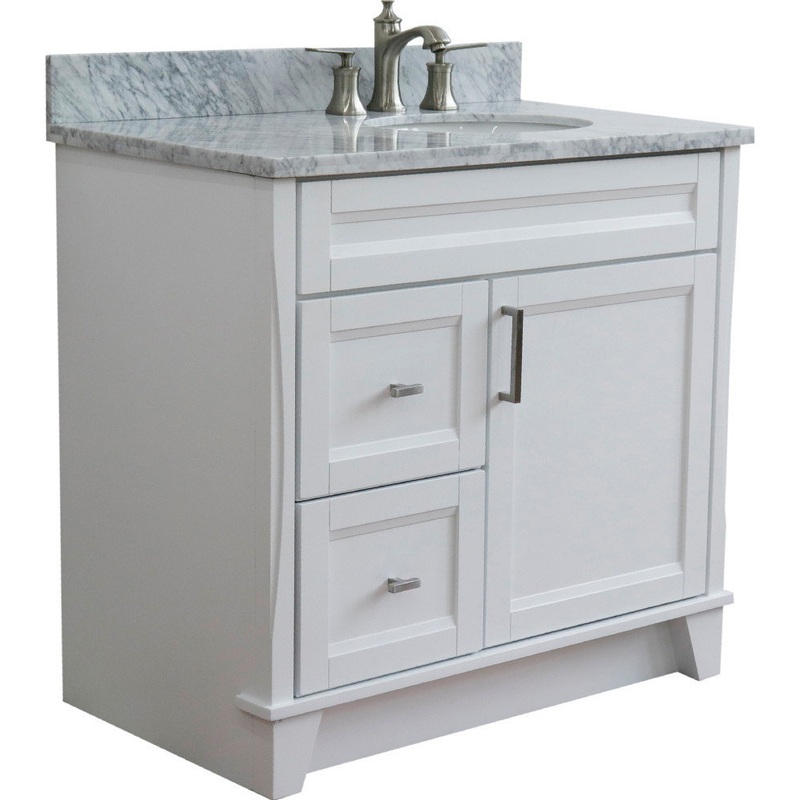 37″ Single Sink Vanity, White Finish Top With White Carrara Marble – Transitional – Bathroom Vanities And Sink Consoles – by Bellaterra Home