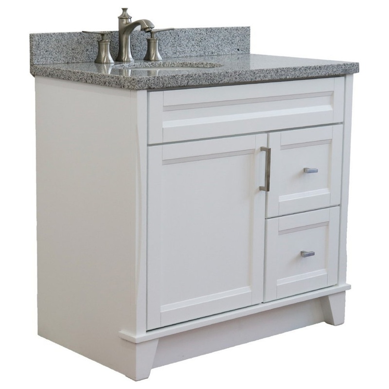 37″ Single Sink Vanity, White Finish With Gray Granite And Left Door/Left Sink – Transitional – Bathroom Vanities And Sink Consoles – by Bellaterra Home