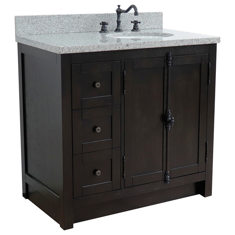 37″ Single Vanity, Brown Ash With Gray Granite Top, Right Doors/Right Oval Sink – Transitional – Bathroom Vanities And Sink Consoles – by Bellaterra Home