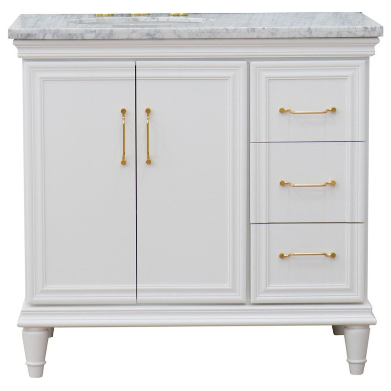 37″ Single Vanity, White Finish With White Carrara – Traditional – Bathroom Vanities And Sink Consoles – by Bellaterra Home