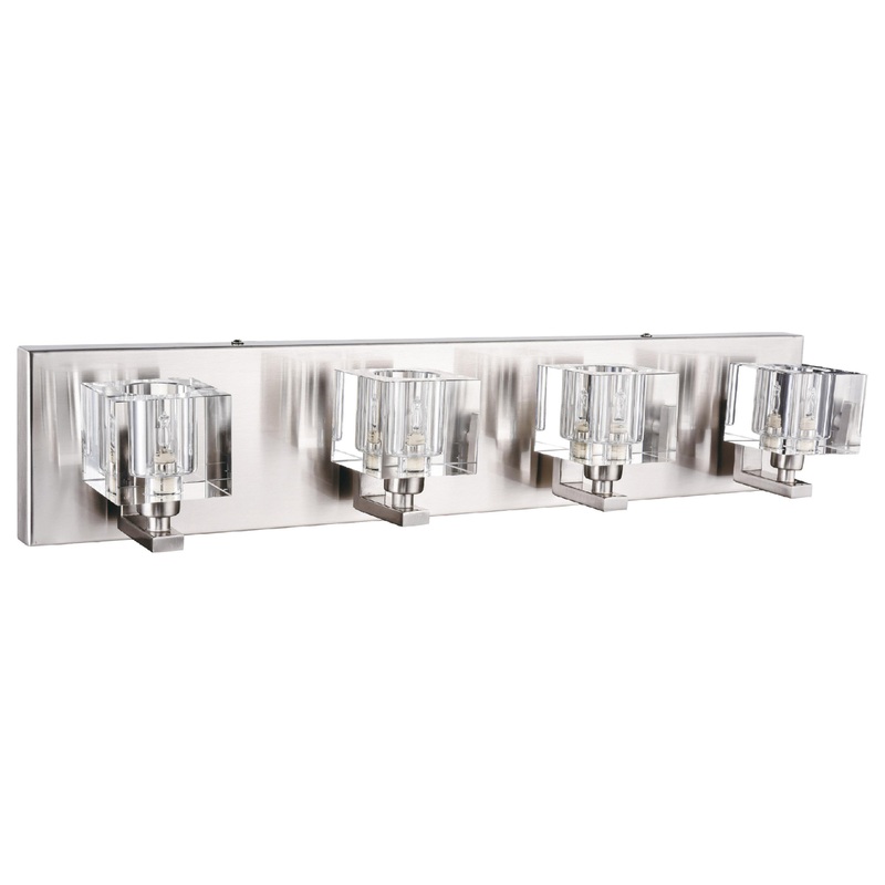 Elevate your bathroom with the Modern 4-Light Clear Glass Cube Shade Vanity Light. This stunning lighting fixture features a sleek chrome back plate and four clear glass cube shades that create a dazzling display of light. The modern design adds a touch of elegance to any space, making it perfect for bathrooms and powder rooms. This lighting fixture provides ample illumination for your daily routines while serving as a stylish focal point.