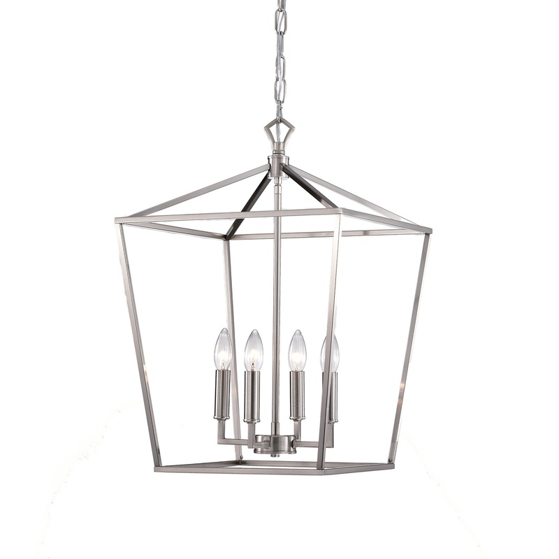 4-Light Brushed Nickel Lantern Pendant Chandelier 16in. – Transitional – Chandeliers – by Edvivi Lighting