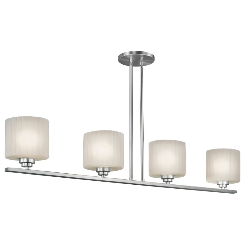 4 Light Island Pendant, Brushed Nickel, Frosted Ribbed Glass – Transitional – Chandeliers – by Buildcom
