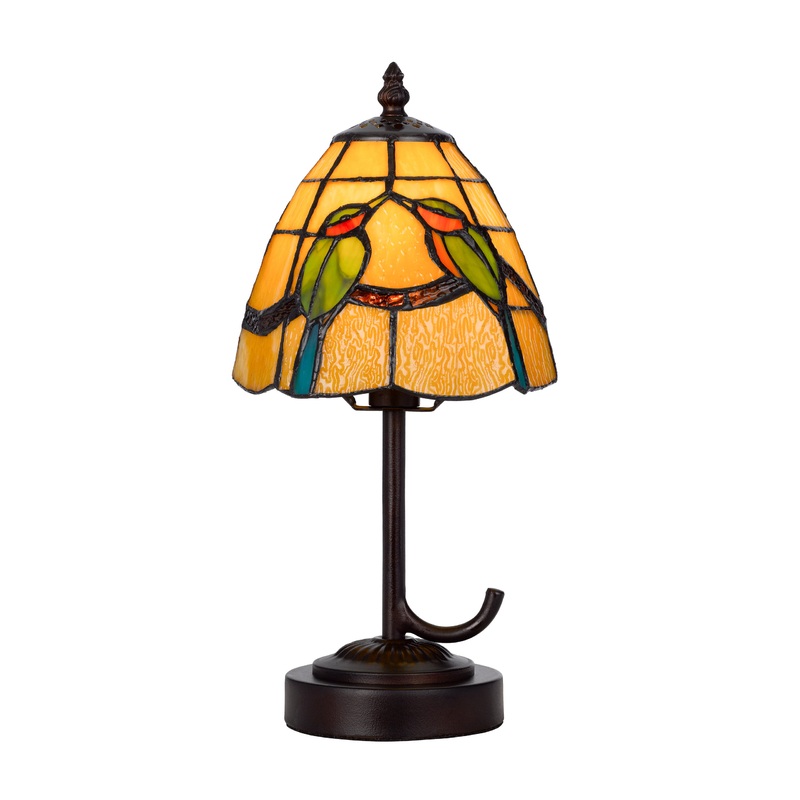 Add a pop of color to your space with this compact size accent lamp. It features a hand-painted stained tiffany glass shade and a finish of dark bronze. It is constructed with durable metal and resin and has a weighted base for added stability.