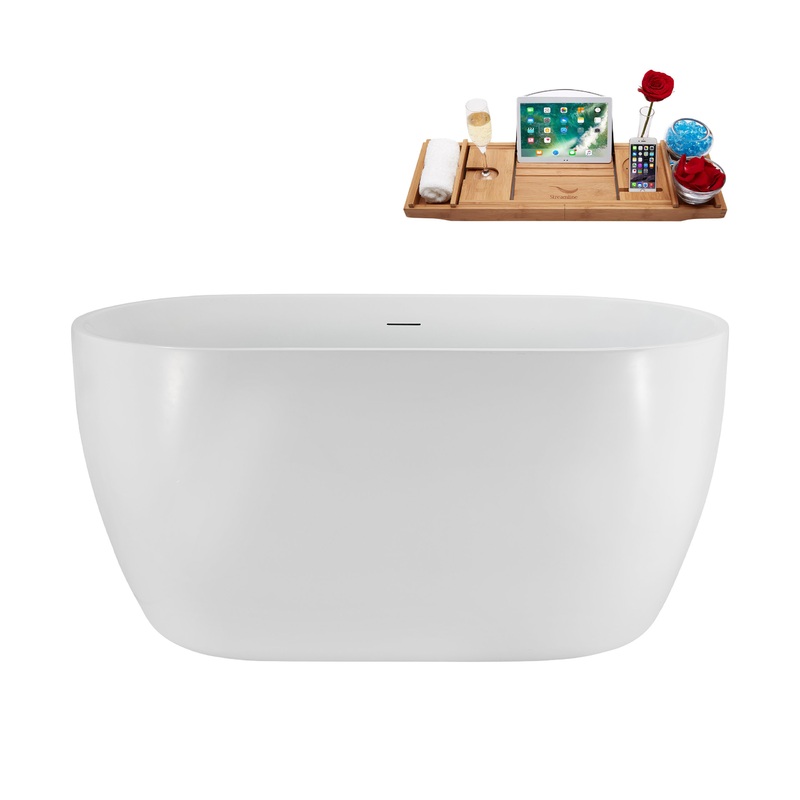 The 48″ Streamline N4960ORB Soaking Freestanding Tub and Tray With Internal Drain in Matte Oil Rubbed Bronze is a top choice among 48-inch bathtubs. With its impressive 62-gallon capacity and elegant matte oil rubbed bronze pop-up drain, it seamlessly combines functionality with luxury. Built from high-quality, pure acrylic, this bathtub promises longevity and resilience. Its freestanding design, adorned with a lustrous glossy white finish, promises to elevate your bathing moments to unparalleled heights.