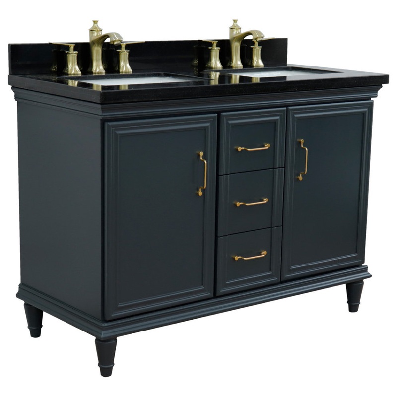 49″ Double Vanity, Dark Gray Finish With Black Galaxy And Rectangle Sink – Transitional – Bathroom Vanities And Sink Consoles – by Bellaterra Home
