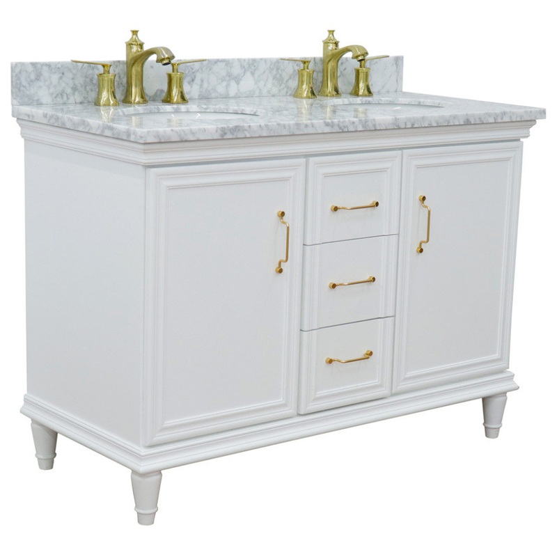 49″ Double Vanity, White Finish With White Carrara And Oval Sink – Transitional – Bathroom Vanities And Sink Consoles – by Bellaterra Home