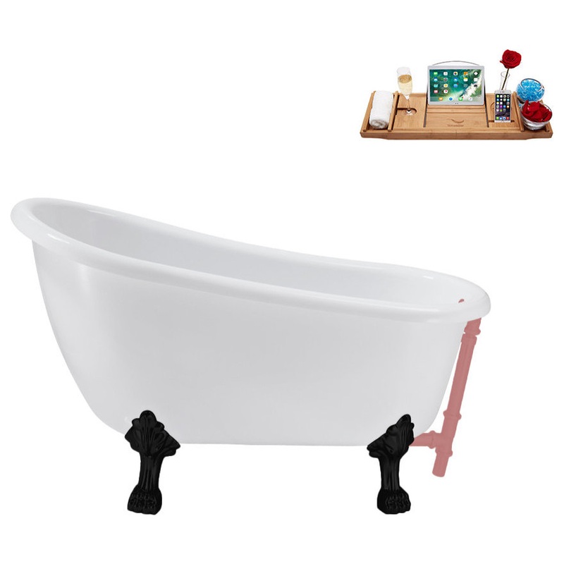 It is time to upgrade your bathroom with the luxurious 53” Streamline N487BL-PNK Soaking Clawfoot Tub and Tray with External Drain a classic design that has been updated for ultimate comfort. This bathtub provides a holistic bathing experience since it combines convenience, delicacy, and durability. Made from 100% pure acrylic, this clawfoot bathtub promises to take your bathroom space to another level. Measuring at 53 inches and with a capacity of 60 gallons, the 53” Streamline N487BL-PNK Soaking Clawfoot Tub and Tray with External Drain is ideal for endless relaxing baths. The tub has a matte pink external drain and matte black clawfeet to ensure a graceful design.