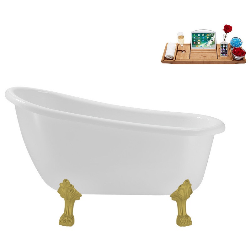 Spoil yourself with this 53'' Streamline N488BGL-IN-BNK Soaking Clawfoot Tub and Tray with Internal Drain. Equipped with brushed gold clawfeet and a brushed nickel pop-up drain designed to fit 60 gallons of water, this bathtub will bring a personal spa rig