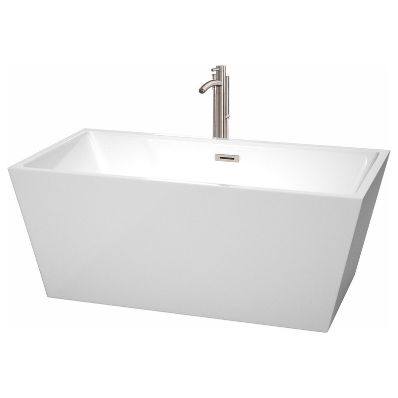 59″ Freestanding Bathtub, White, Faucet, Drain, Overflow Trim, Brushed Nickel – Contemporary – Bathtubs – by First Look Bath