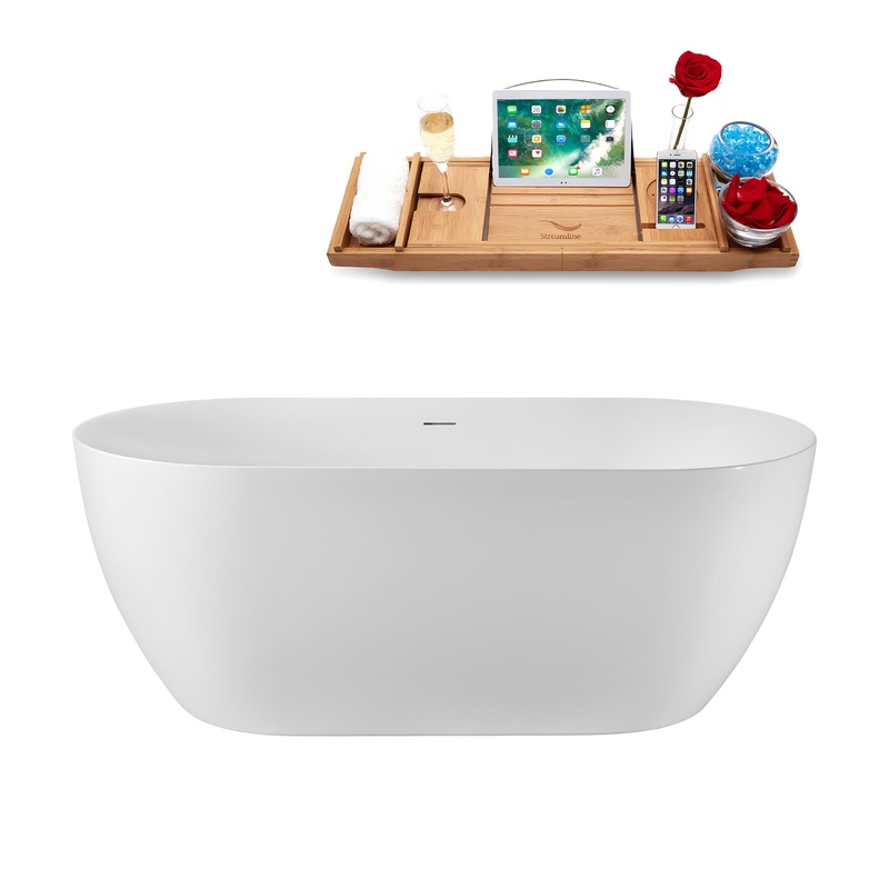 If you are looking for a freestanding bathtub, the 59" Streamline G-39-190-BL Soaking Glossy White Freestanding Tub and Tray With Internal Drain in Matte Black is everything you have been looking for. It combines comfort, convenience, longevity, and style