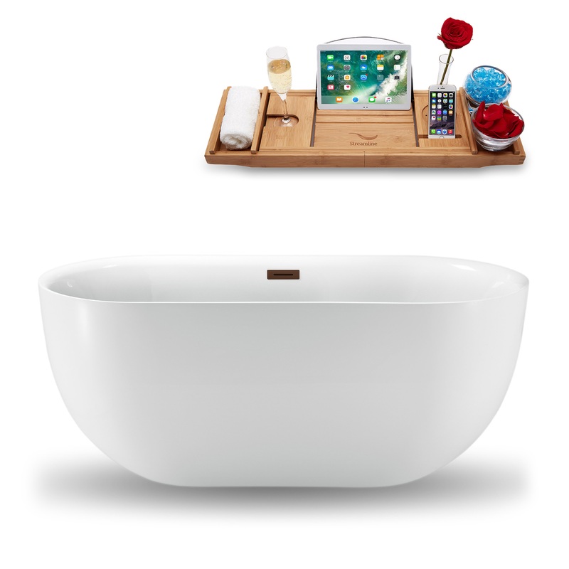 Indulge in the soothing comfort of 59" Streamline N1241ORB Soaking Freestanding Tub and Tray With Internal Drain. Designed with a freestanding style in mind for easy installation and oil-rubbed bronze pop-up drain for style and practicality, this bathtub i