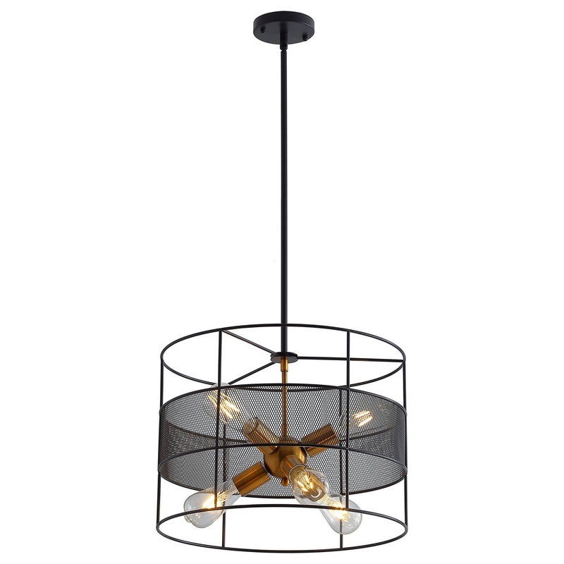 6-Lights Drum Shape Mesh Pendant Lighting Chandelier, Matte Black+Gold – Industrial – Pendant Lighting – by YZZY LLC