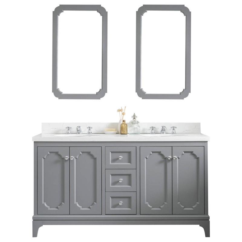 60″ Wide Cashmere Gray Double Sink Quartz Carrara Bathroom Vanity, Double – Transitional – Bathroom Vanities And Sink Consoles – by Water Creation