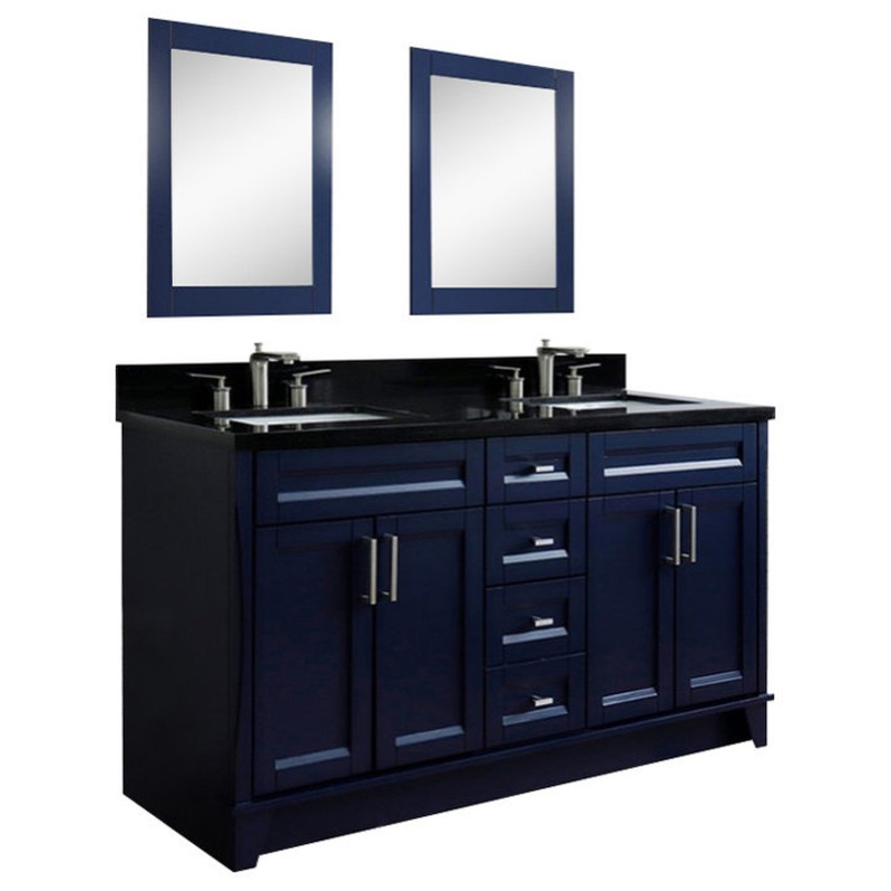 61″ Double Sink Vanity, Blue Finish And Black Galaxy Granite – Transitional – Bathroom Vanities And Sink Consoles – by Bellaterra Home