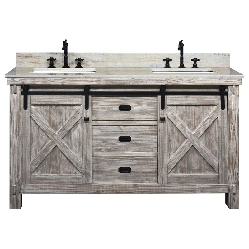 61″ Solid Fir Barn Double Sink Vanity Marble Top – Farmhouse – Bathroom Vanities And Sink Consoles – by inFurniture Inc.,