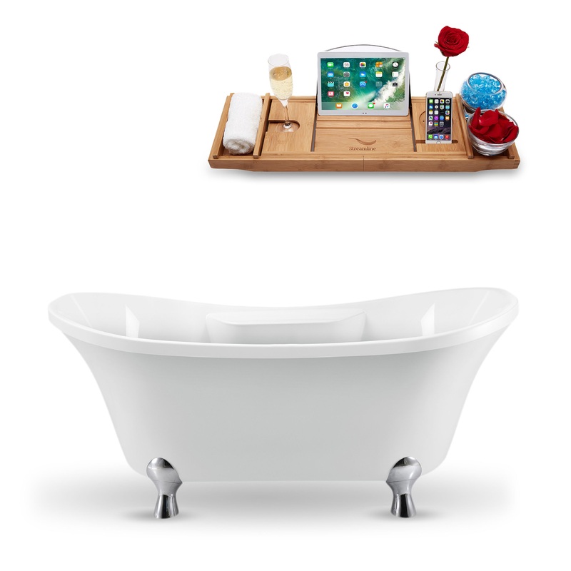 If you are looking for a clawfoot bathtub, the 68″ Streamline N903CH-GLD Clawfoot Tub and Tray With Internal Drain is everything you have been looking for. It combines comfort, convenience, longevity, and style – all at once. Measuring at 68 inches and holding up to 60 gallons of water, the clawfoot style of this bathtub makes installation super easy – giving you the flexibility to customize it just the way you want in your bathroom. And for an extra touch of luxury, it comes with a glossy white finish and features polished chrome clawfeet as well as a polished gold internal drain that is made to impress. This bathtub is also made from a sturdy acrylic material that is guaranteed to keep your tub free of scratches and stains. This bathtub does NOT have an overflow. This is done by design. No overflow can be installed on the bathtub.