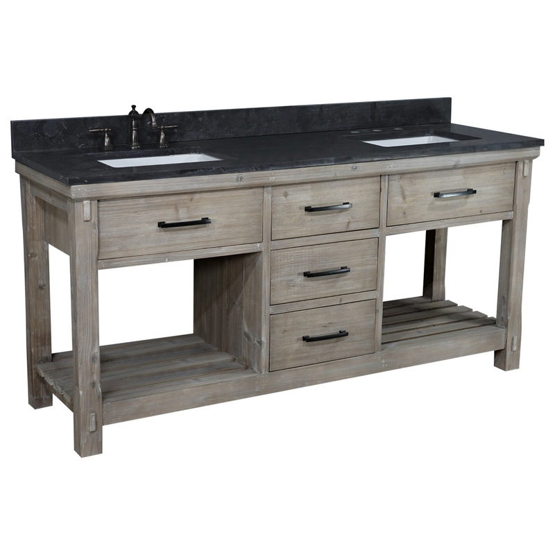 This rustic style bathroom vanity will be perfect for any bathroom. The distressed driftwood finish gives the vanity a unique style. Set includes: One (1) 72rustic style bathroom vanity, One (1) 72-inch marble top with backsplash and two ( 2) under mounted
